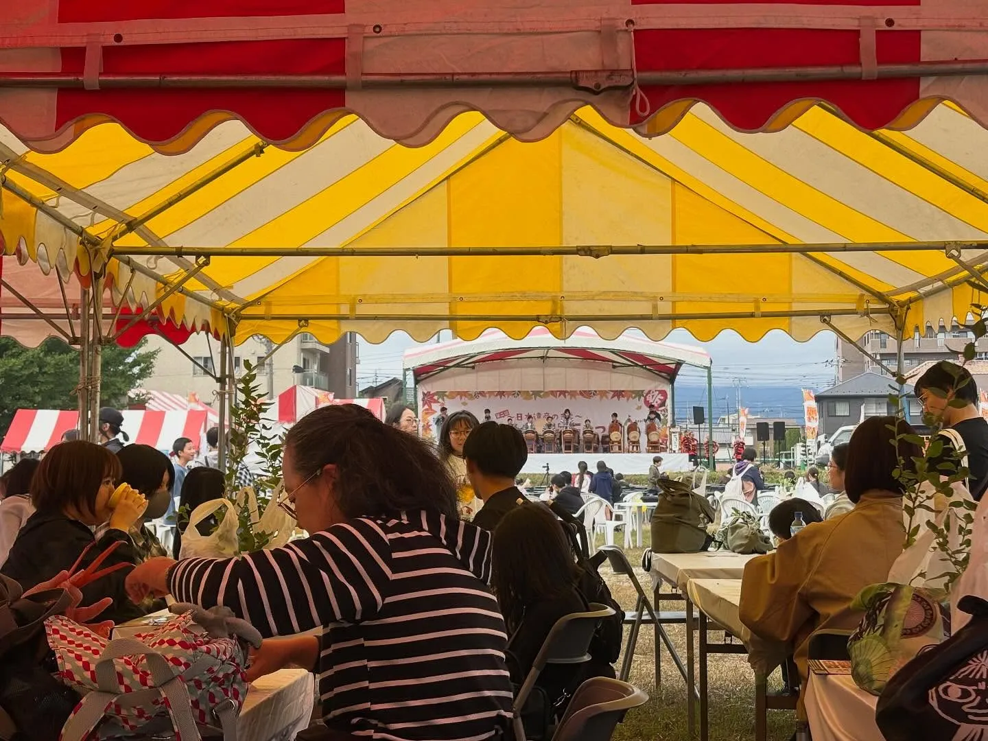 お囃子の心地よい音を聴きながら、地元の郷土料理、